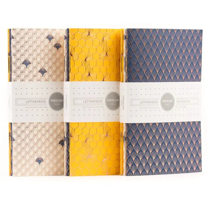 Set of 3 Pocket Notebooks with Geometric Foil by Porchlight Press Letterpress