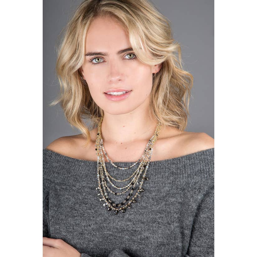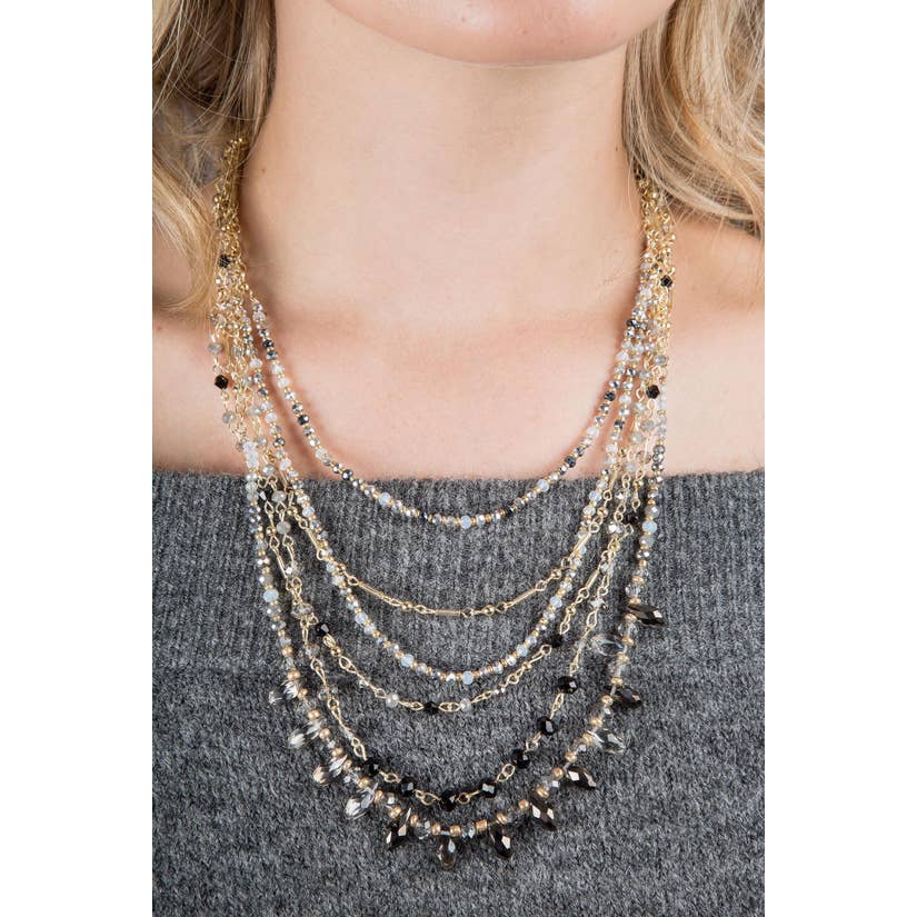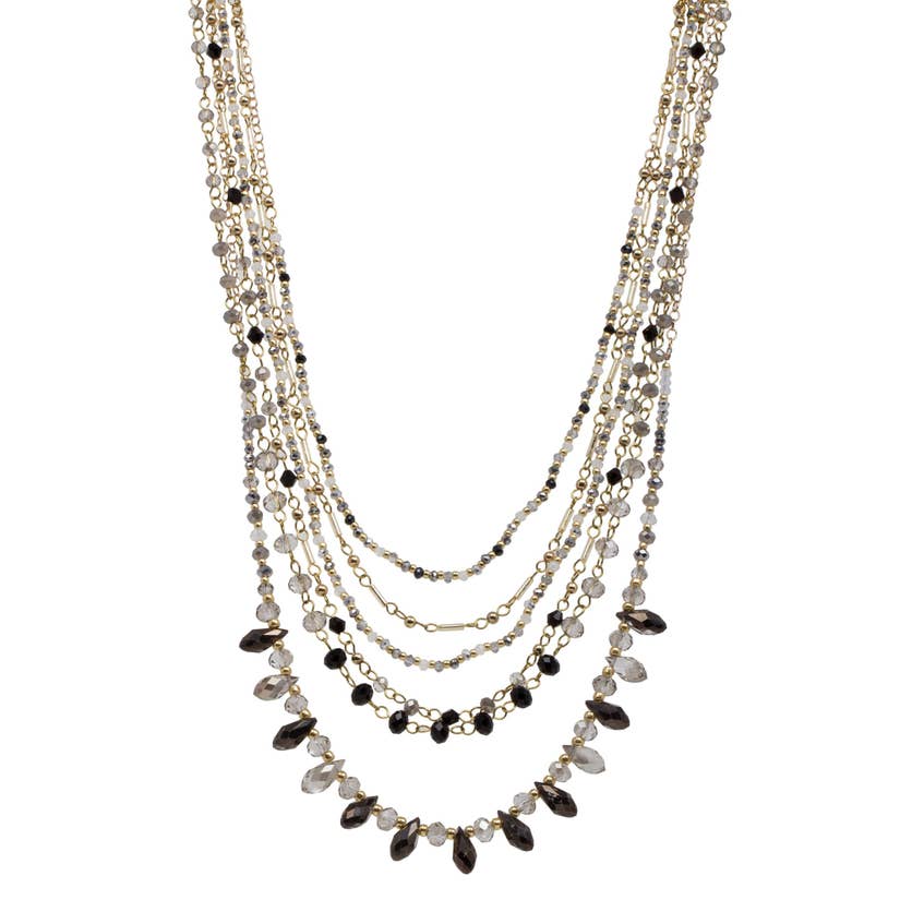 Make a regal statement in our Amara Layered Necklace. With cascading strands of beautiful glass beads, you'll want to wear this shimmering layered necklace with all of your occasion-worthy outfits. Lobster clasp closure connects all of these strands together to make one fabulous necklace. Size: 25" Long Lobster Claw Glass Beads
