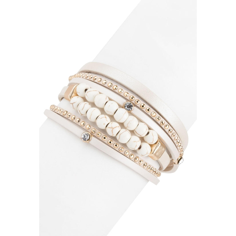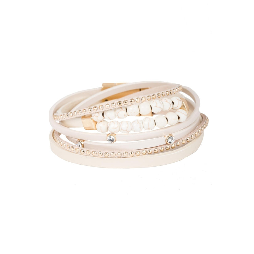 Our Belmont Wrap Bracelet is easy to stack with a twist of the wrist. This bracelet features smooth leather strands and natural stone beads, with a hint of sparkle from crystals. Pair with your favorite jewelry or wear as a statement piece of your own.