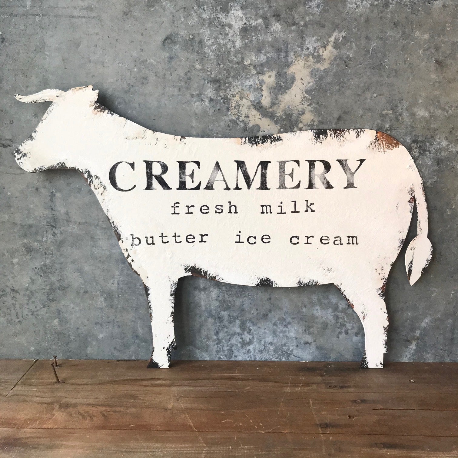 Handmade by Mompreneur, Lisa Delorme in Selah, Washington, USA. This beautiful metal dairy cow wall hanging is designed to look like it just came off the wall of a barn or mercantile. It is finished with a rusty, painted finish and each piece is an original. No two are exactly alike!