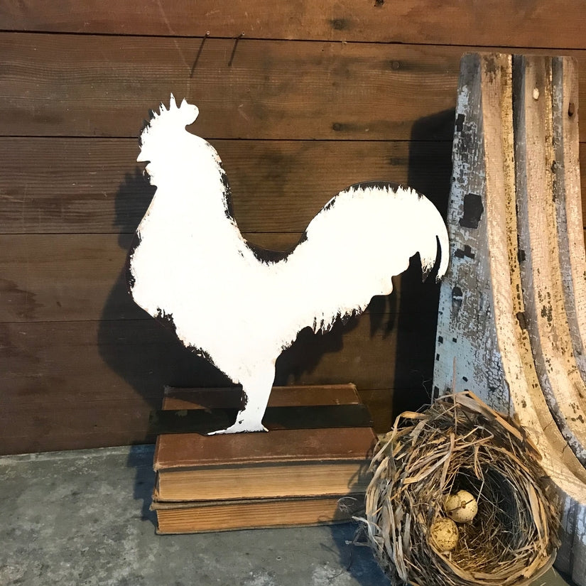 This rusty, cream painted metal chicken is free standing, making it perfect for a table centerpiece, shelf or mantel. Handmade by Mompreneur, Lisa Delorme in her workshop in Selah, Washington, USA. Each unique piece will rust in their own way, with different amounts of rust coming through the paint. No two will look identical or match the photo exactly.