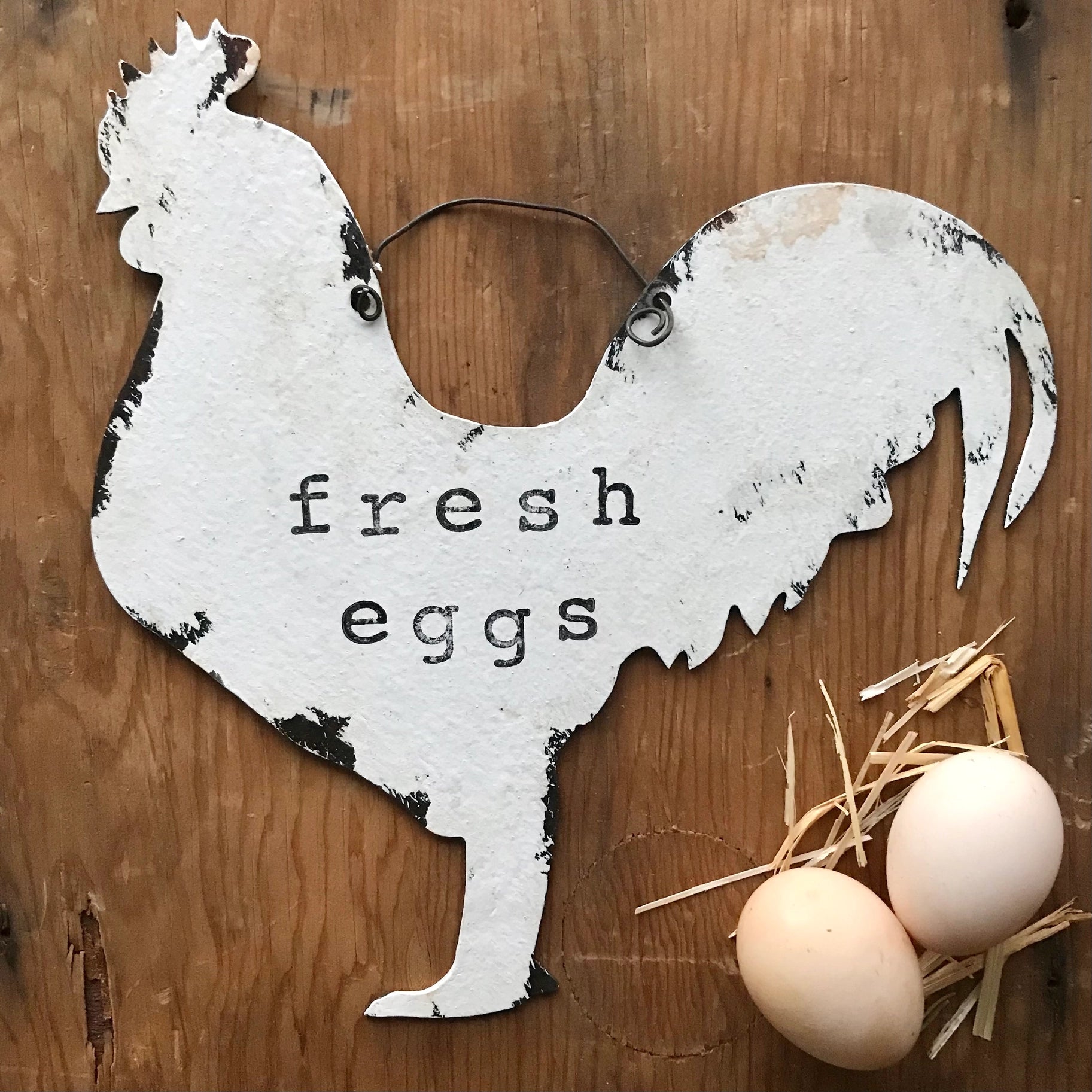 Fresh Eggs Chicken Shaped Sign by Our Country Homestead