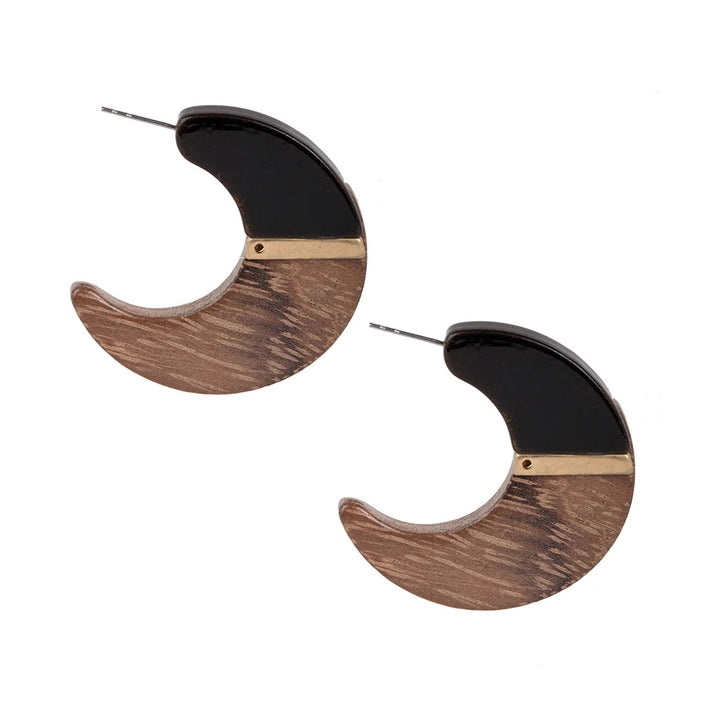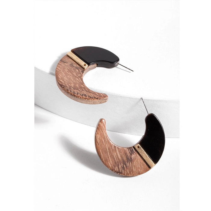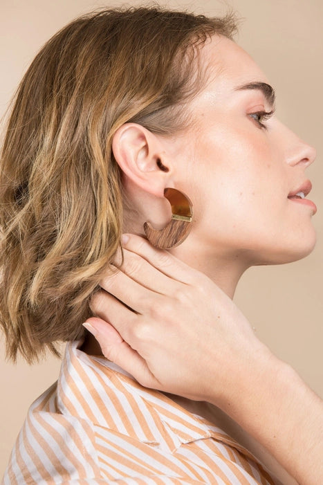 These Zion Earrings are a must-have for a fashionable collection. Featuring a flat wooden crescent overlapped with a rich brown acrylic, we've taken a classic open-hoop and elevated it into a work of art you'll want to wear every day.